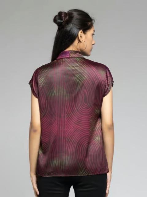 A vibrant tapestry of color dances across this effortlessly chic top. Crafted from luxurious satin, its cowl neck drapes gracefully, while the regular fit ensures a flattering silhouette. Short sleeves add a touch of casual elegance, and the printed pattern, a kaleidoscope of hues, makes a bold statement. Perfect for a night out or a stylish daytime look, this top is a must-have for any fashion-forward woman.
